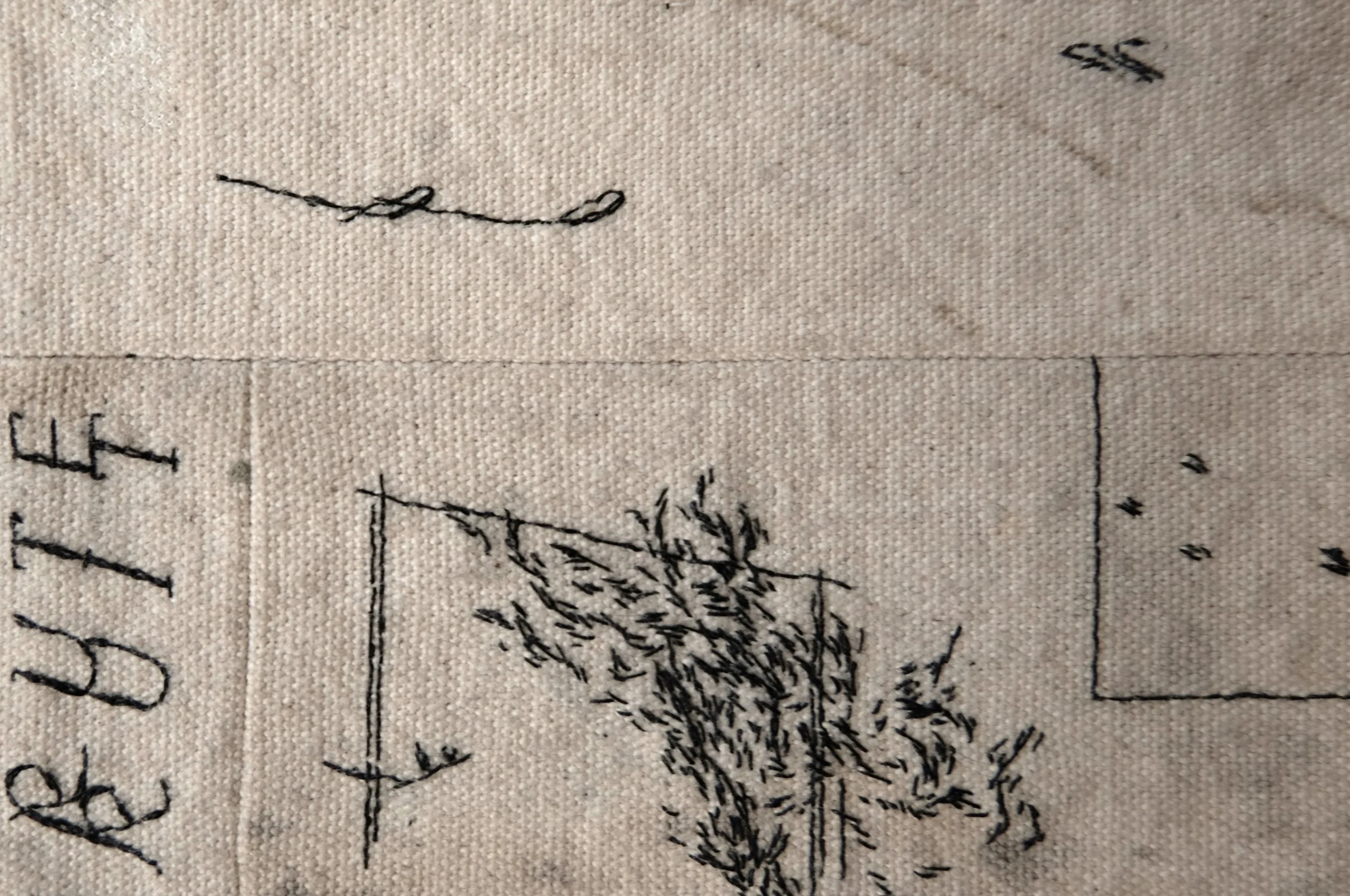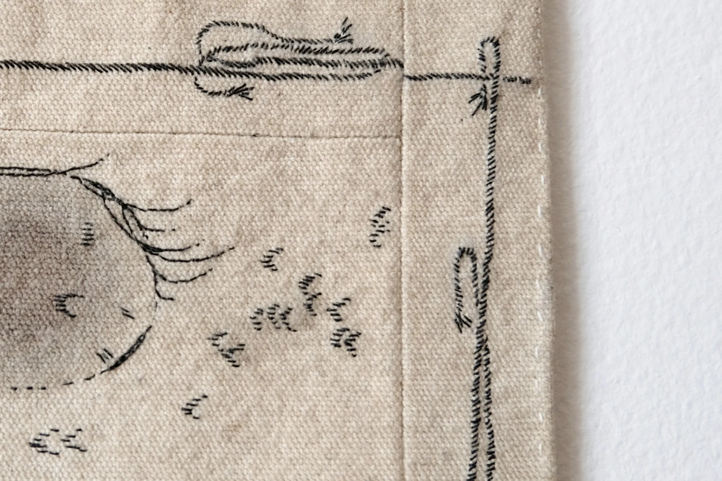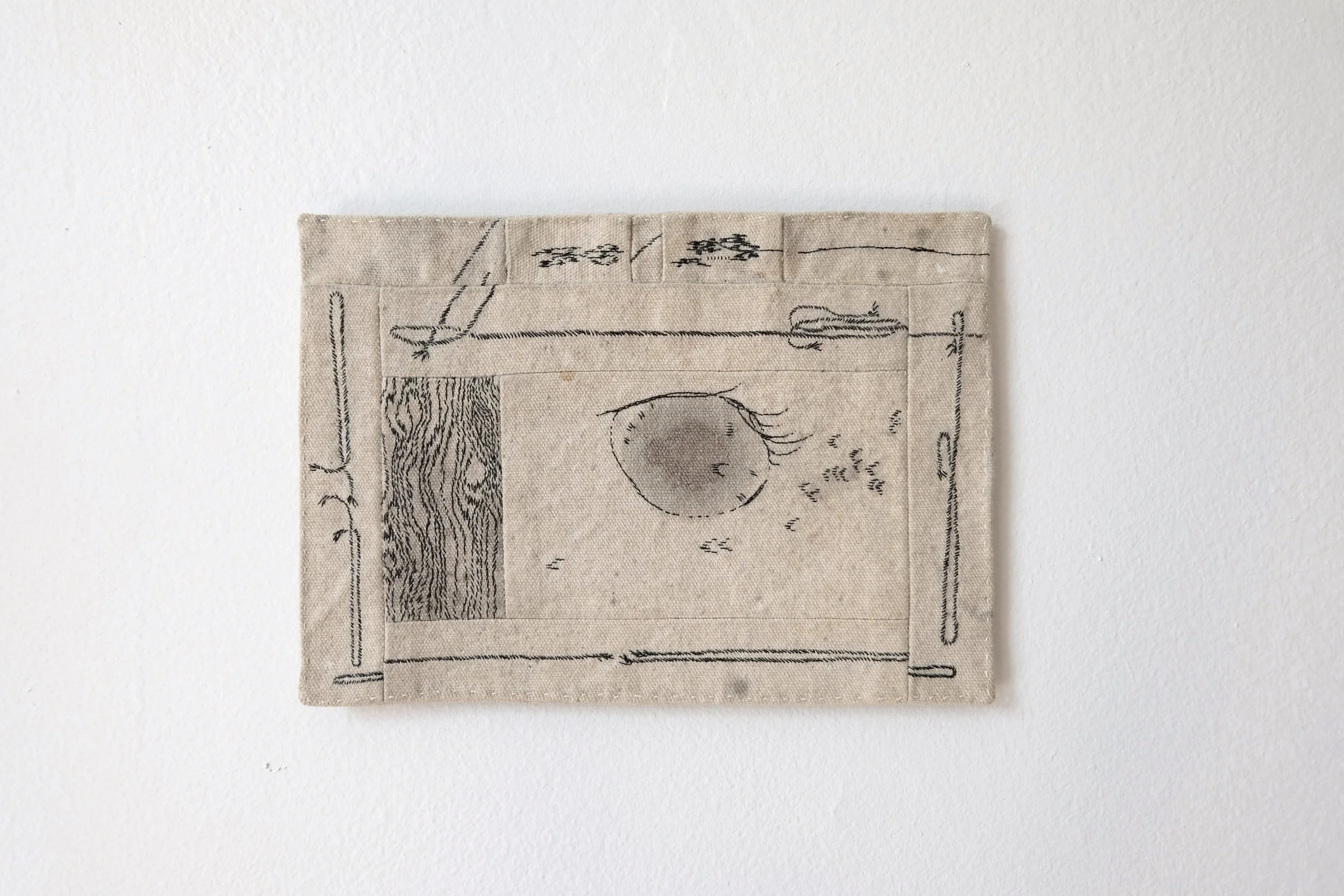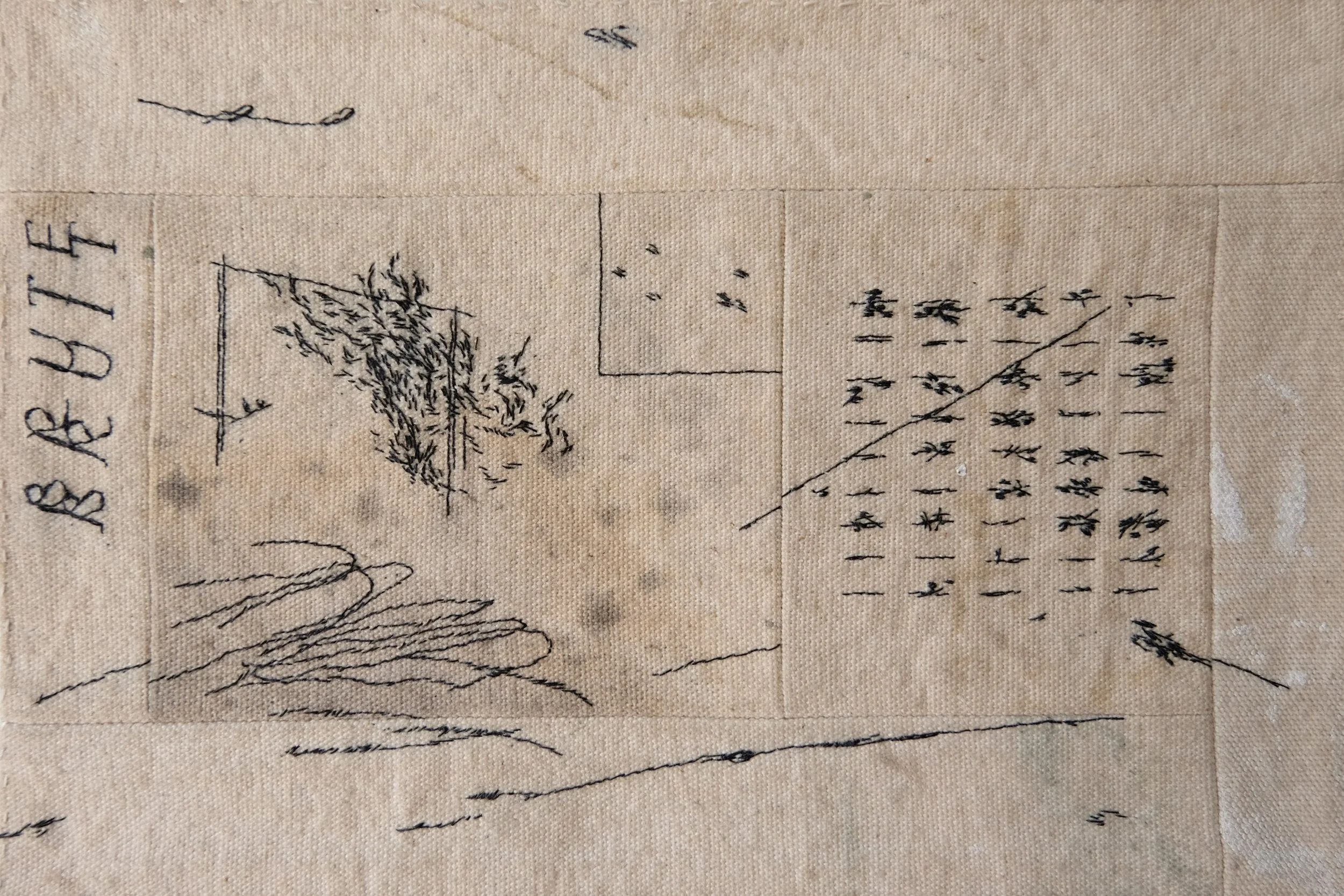 Hand-embroidered lacquered paper thread on canvas